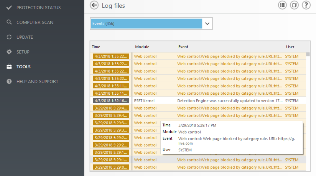 سیستم پیشگیری از نفوذ (HIPS) مبتنی بر میزبان ESET فعالیت سیستم را رصد می کند و از یک مجموعه قوانین از پیش تعریف شده برای شناسایی و متوقف کردن رفتار مشکوک سیستم استفاده می کند.